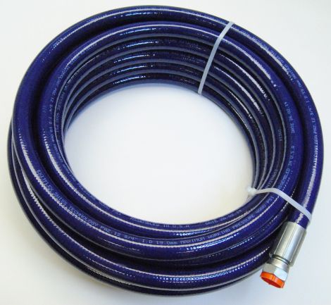 This 3/4" airless sprayer hose is commonly used among industrial paint suppliers on various roof rigs. With fluid mechanics in mind, only the finest quality of hoses and fittings are used, which will allow you to safely work within the surface treatment industry. Whether you are industrial spray painting a water tower, bridge or roof and need a Graco airless paint sprayer hose or Wagner airless paint sprayer hose, you can find the exact high pressure hose to solve all your fluid dynamics requirements.